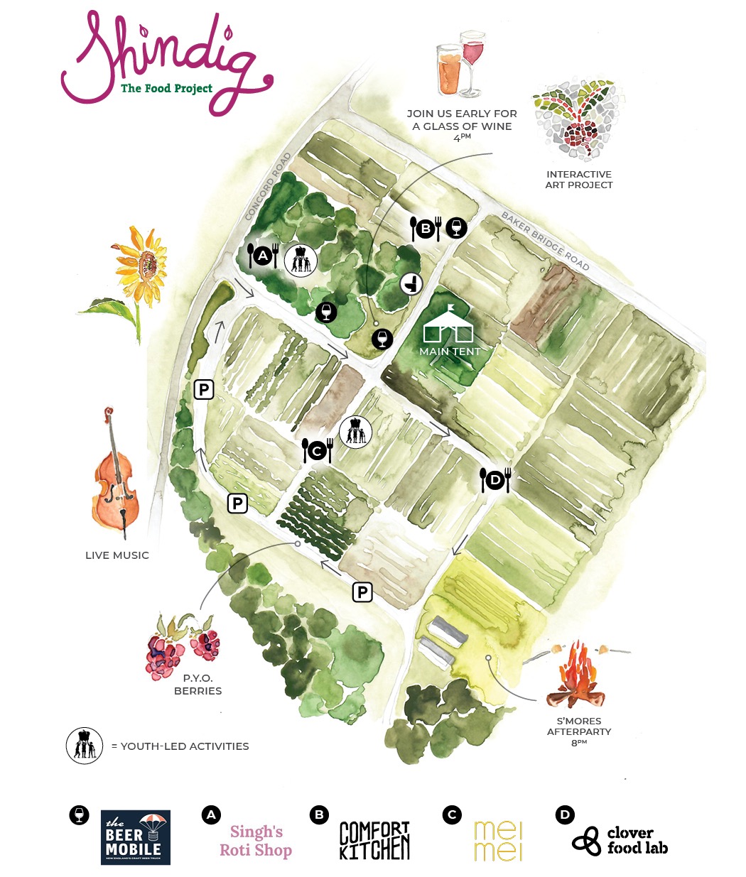 We’re deeply grateful to the many people who made Shindig at Baker Bridge possible. Please view our event sponsors, listed in the beautiful map and event program donated by Christina Van Vleck, our generous Lincoln neighbor.
