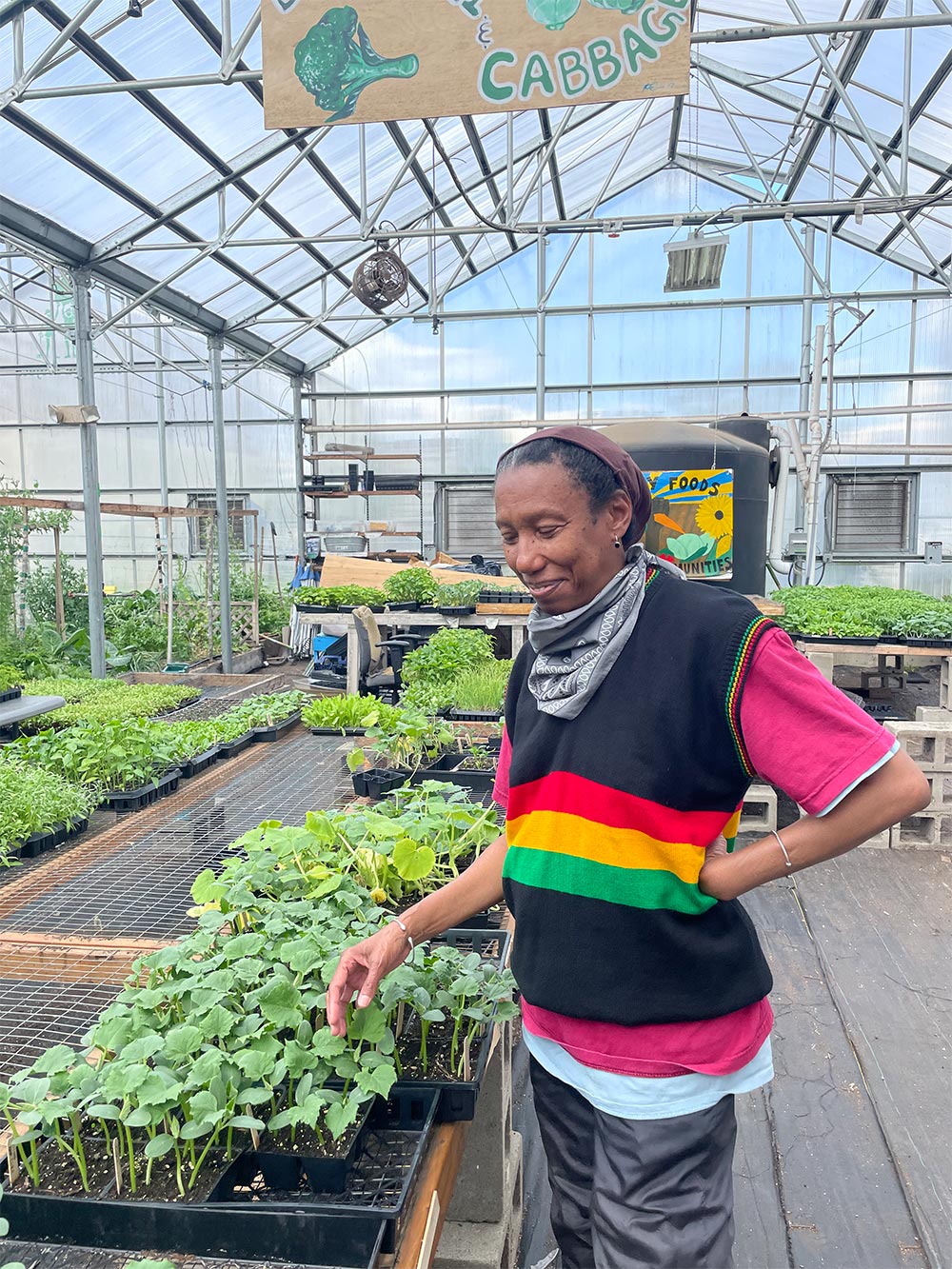 Talibah is Rasta, and practices veganism. Volunteering at the greenhouse allowed her to maintain a plant-based diet, while also supporting her community.